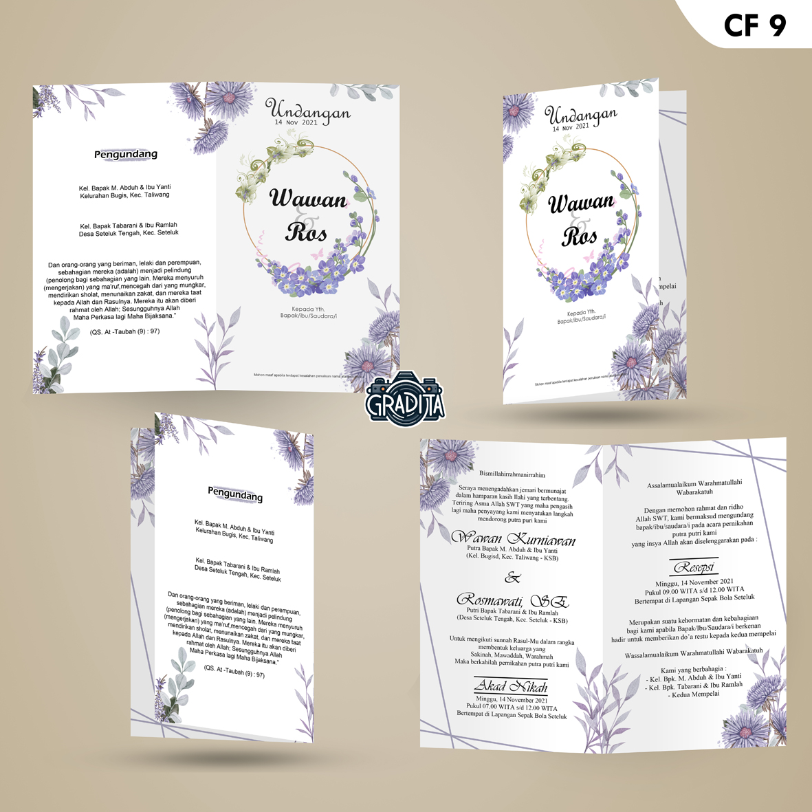 Undangan sudah dilipat, dimasukkan ke plastik dan diberi stiker (TERIMA BERES) min. pesanan 300 undangan